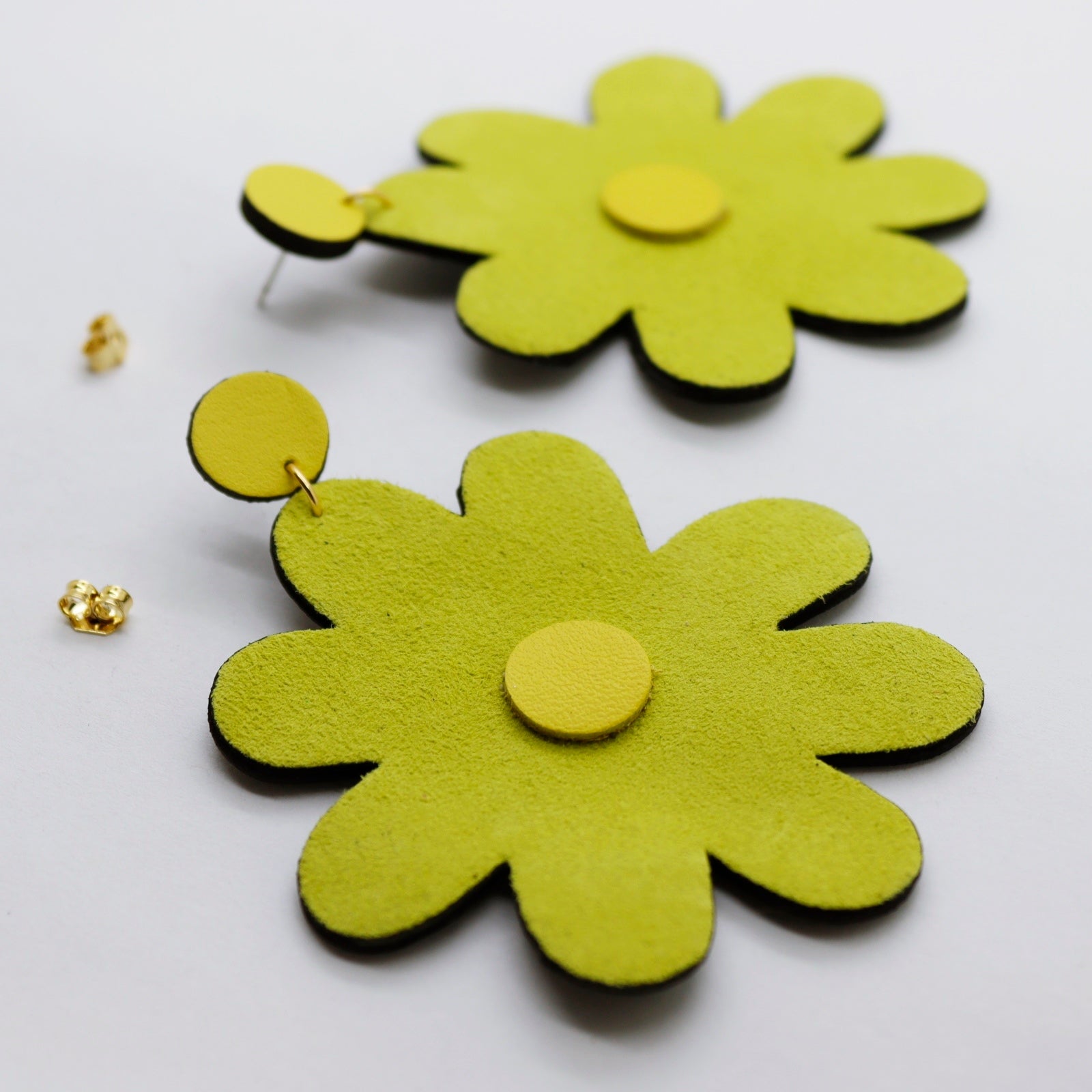 Boucles d'oreilles •SAINTA• en daim et cuir jaunes.